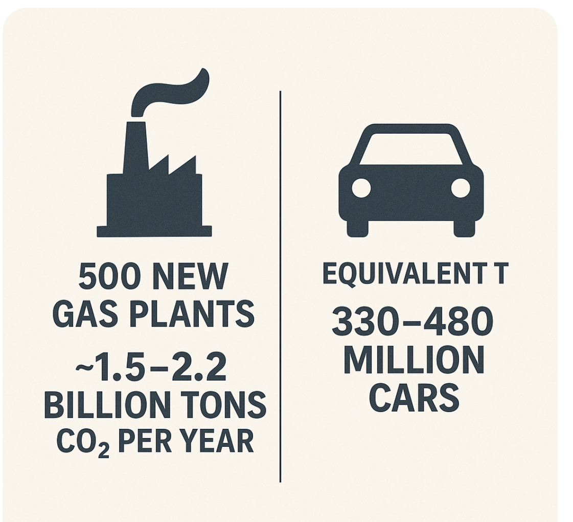 Every new gas plant means decades of additional fossil emissions, making it harder to bend the climate curve and meet Paris Agreement goals.